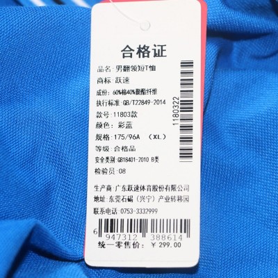 跃速男翻领短T恤 款号:11803(彩蓝)