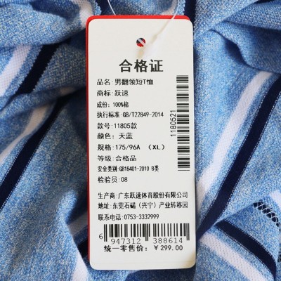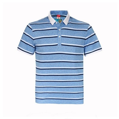 男士翻领条纹短袖T恤 款号:11805(天蓝色)