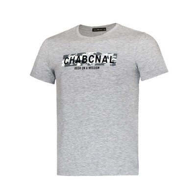男子夏季纯色时尚图案圆领休闲T恤 灰色 款号:11716