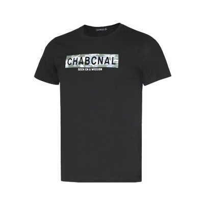男子夏季纯色时尚图案圆领休闲T恤 黑色 款号:11716